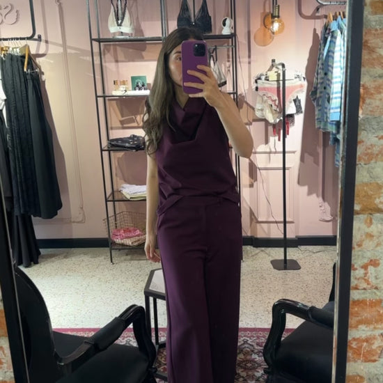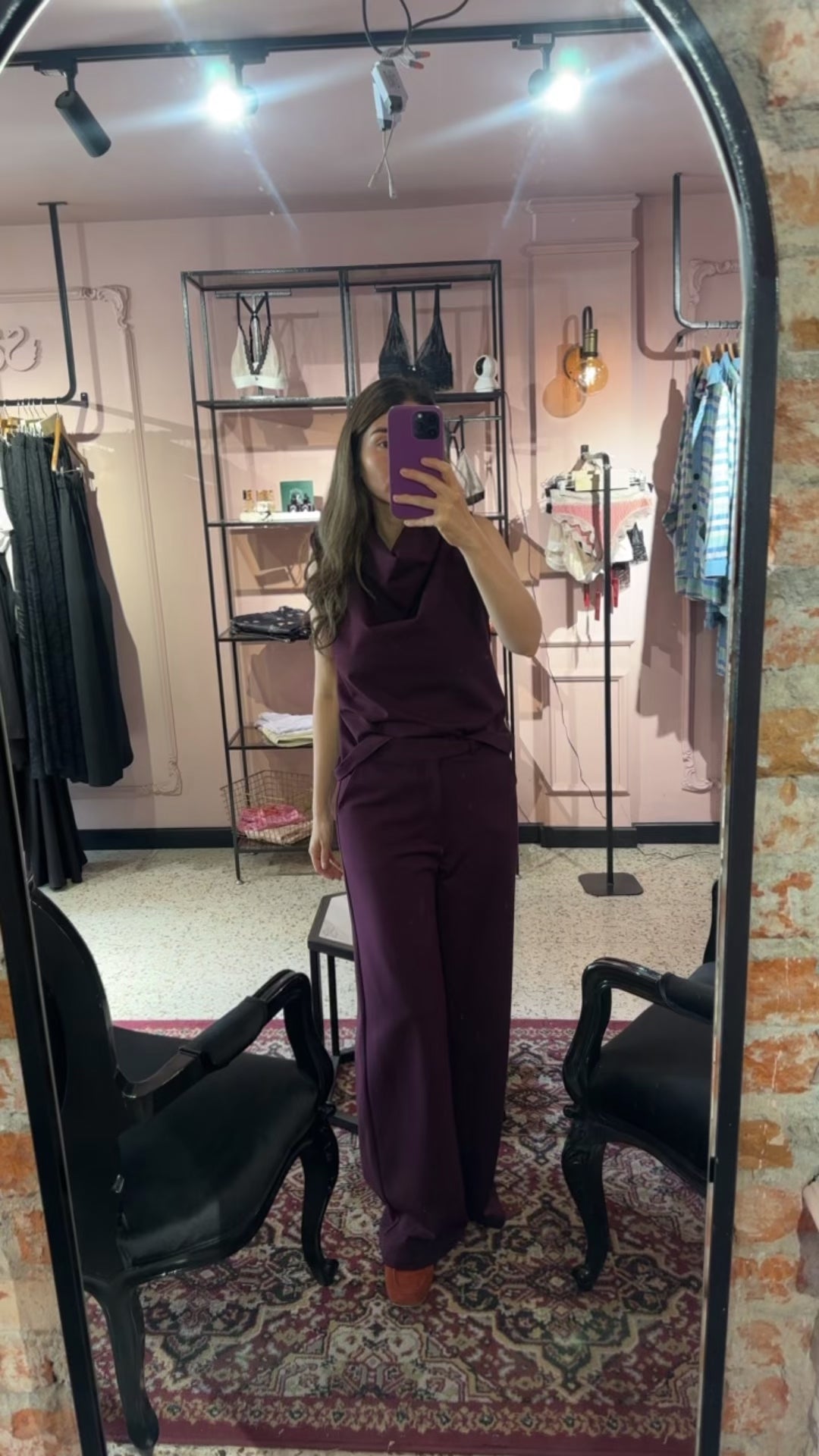 Set con blusa drapeada, con tela que favorece todas las figuras, manga siza, pantalón de corte recto ajustado al cuerpo que resalta la figura y favorece la silueta.